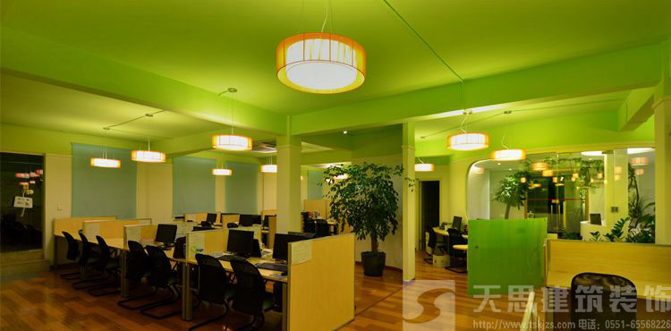 提到办公室,人们的脑海里就会浮现出几种办公室的典型形象:机关里灰白的墙壁、棕色的桌椅,让人感到沉闷;写字楼里雪白的墙壁、青灰色的桌椅,又让人感到呆板。在办公空间设计中,色彩占有相当重要的地位,装饰对象的效果不仅与空间处理以及家具、陈设和灯光的布置相关,而且更离不开色彩。色彩在办公室装修设计中的巧妙应用,不仅会对视觉坏境产生影 响,并且弥补某些不足,还会对人的情绪和心理活动产生积极影响。